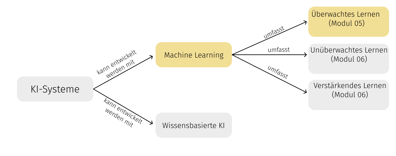 In diesem Modul steht das überwachte Lernen im Mittelpunkt. Im folgenden Modul werden Sie dann unüberwachtes und verstärkendes Lernen kennenlernen.