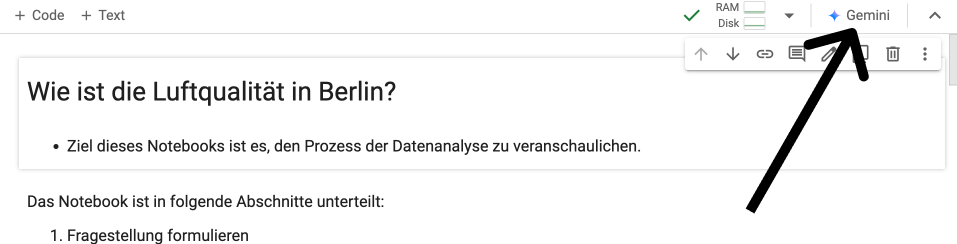 Google Colab wird jetzt von Gemini, einem generativen KI-System, unterstützt. Das bedeutet, dass Sie ganz einfach einen Code-Assistenten verwenden können. Sie können Gemini ausprobieren, um die Daten, an denen wir gearbeitet haben, weiter zu erforschen. Zuvor möchten wir jedoch einige Richtlinien für die Verwendung generativer KI-Systeme aufstellen. Lesen Sie weiter: