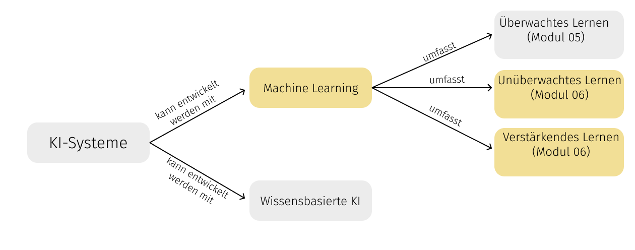 In Modul 03 haben Sie gelernt, dass KI-Systeme auf zwei Arten entwickelt werden können: durch maschinelles Lernen und/oder durch wissensbasierte KI.