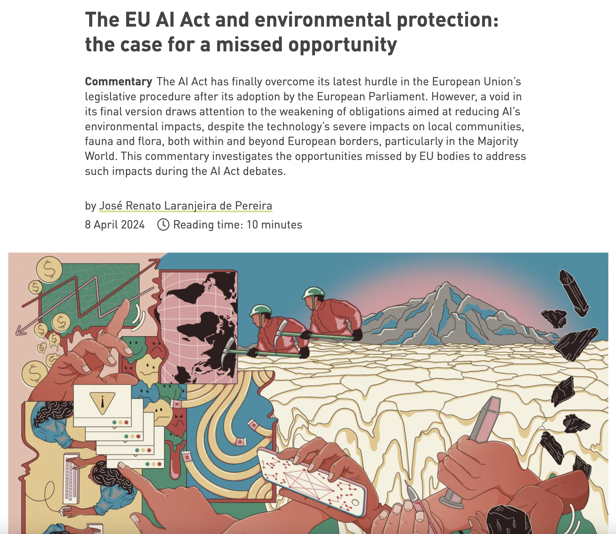 “The EU AI Act and Environmental Protection: The Case for a Missed Opportunity | Heinrich Böll Stiftung | Brussels Office - European Union.” Accessed January 20, 2025. https://eu.boell.org/en/2024/04/08/eu-ai-act-missed-opportunity. |